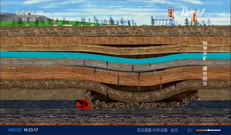 《含水层破坏及其成因》动画在央视科教频道播出截图