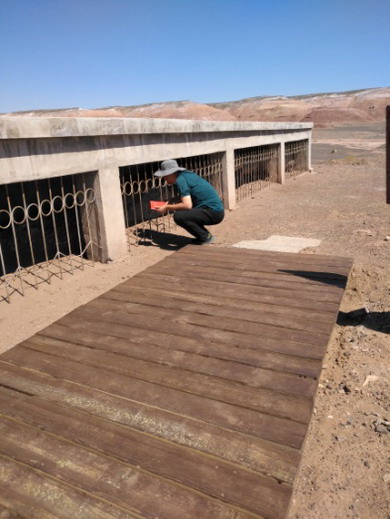 近日,项目组赴新疆鄯善、哈密、奇台三个县的化石产地开展调研。重点调查了地形、气候、化石岩性、化石破坏情况、破坏原因、监测和保护等情况。项目组还与当地自然资源主管部门进行座谈,了解化石产地保护管理现状和存在的问题。通过调查研究发现:一是由于当地极端干旱、温差大,受强烈季风气候影响,野外自然裸露的化石风化破碎速度极快。出露地表的化石在几年内风化殆尽,呈现碎片状。二是化石产地的监测和保护工作十分薄弱,缺少相关制度和技术标准,没有建立有效防止盗采盗挖的保护机制。