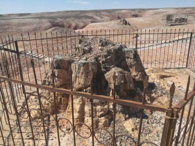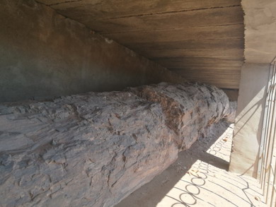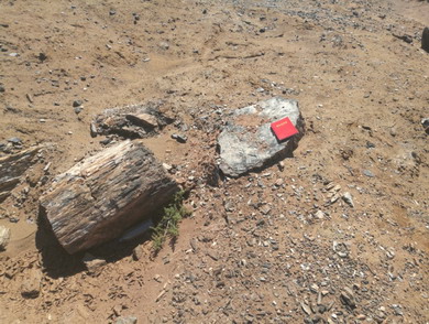 简易保护的硅化木和自然裸露风化破碎的硅化木