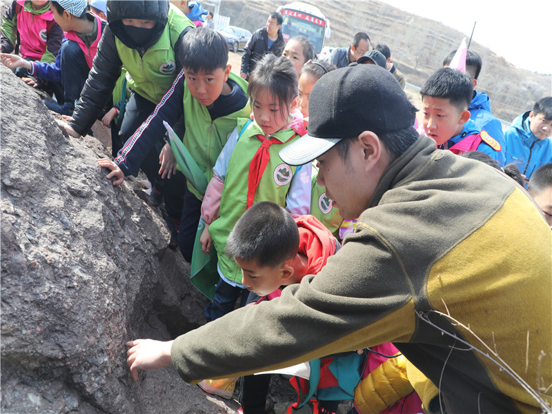 此次科普活动分为室外“探秘莱阳群,重走远古路”和室内“地球历史与地层古生物”两个部分。重走远古路活动中,通过讲解和一对一回答的方式,使孩子们了解了莱阳的恐龙门类及恐龙化石挖掘的过程,认识了不同颜色的凝灰岩,认识了泥裂现象,知道了水晶是如何形成的,学习了如何识别水晶。通过介绍地球历史与地层古生物,孩子们知道了地球的演化历史,了解了从古至今地球上出现过的各类生物。