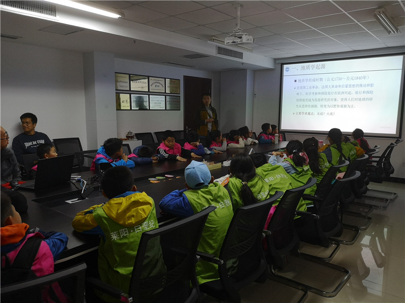 2019年4月6-7日,自然资源部中国地质调查局地质环境监测院(以下简称“环境监测院”)“古生物化石与地质遗迹调查工程”项目组在山东省莱阳白垩纪国家地质公园举办科普讲座,数十名当地中小学生参加。