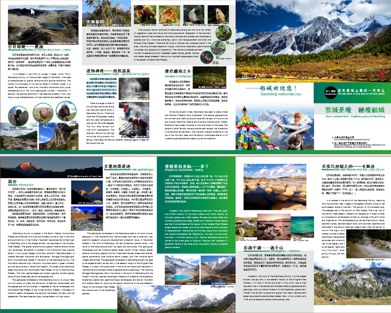 调查同时发现,稻城亚丁地质遗迹普遍缺乏科学解说,依托项目调查精心编制了科普手册、地质遗迹画册、导游图、少儿科普读本、宣传折页等系列科普材料,供游客阅览,提高了民众正确认识自然的意识。