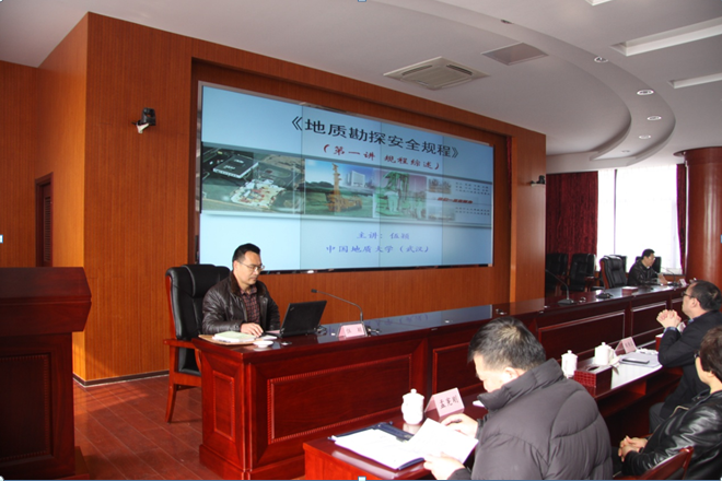 安全生产专题培训是《地质勘探安全规程》。伍颖对《规程》的架构、层次、逻辑关系进行了梳理,对野外生产安全要点进行了提炼,对规程重点条款进行了释义,结合实际案例对水文地质、环境地质、工程地质、钻探工程、坑探工程等方面的安全风险点进行了重点讲解。