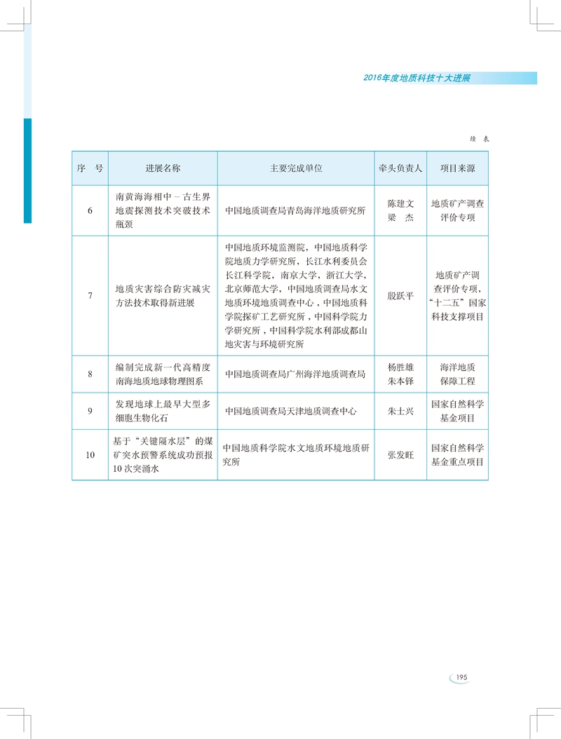 2.中国地质学会2016年度十大地质科技进展