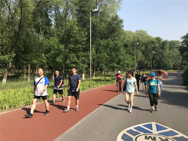 在前往健步场地途中的大巴车上,工会负责人给大家发放了编写的活动安排、规则及注意事项小册并进行了详细讲解,到达奥森公园内广场“国家全民健身示范基地”标志旁,集合并合影留念后比赛开始,公园里空气清新、阳光明媚、鸟语花香,道路两旁花团锦簇、树木茂密、美不胜收,大家在谈笑风生中完成了5公里健步走的目标。大家坚持友谊第一比赛第二,整个比赛充满欢乐和笑声。