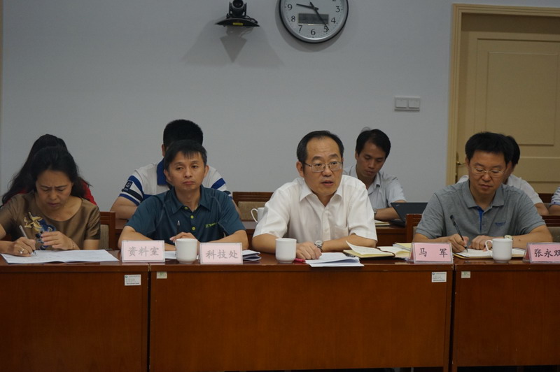 环境监测院马军院长向检查组一行介绍了环境监测院2017年地质调查项目承担情况、项目质量管理落实情况以及两重工作推进情况。科技处负责人罗跃初、二级项目负责人郭海朋分别汇报了单位和抽检项目的质量管理工作情况。