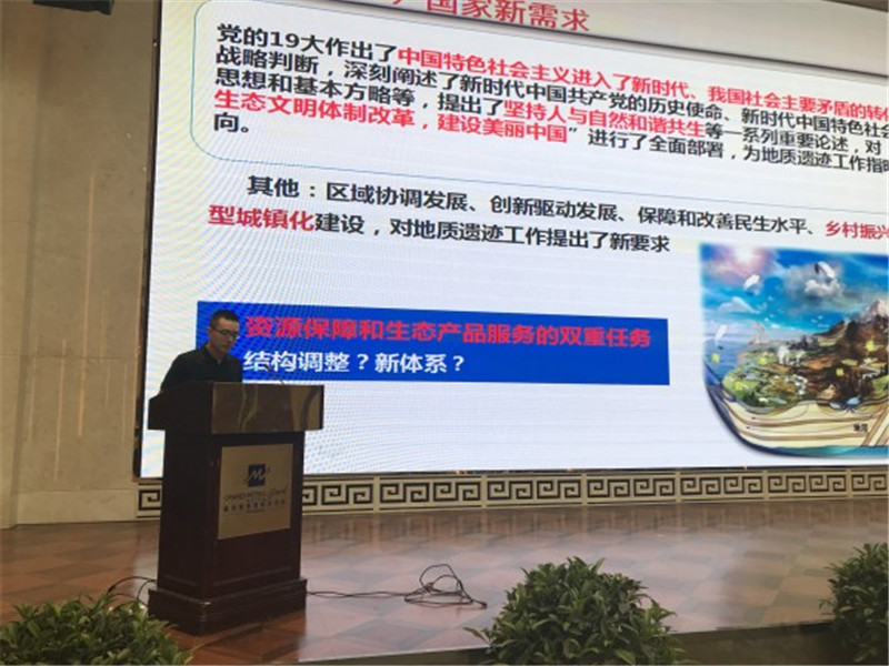 图2 中国地质调查局基础部处长毛晓长讲解地质遗迹调查与展望
