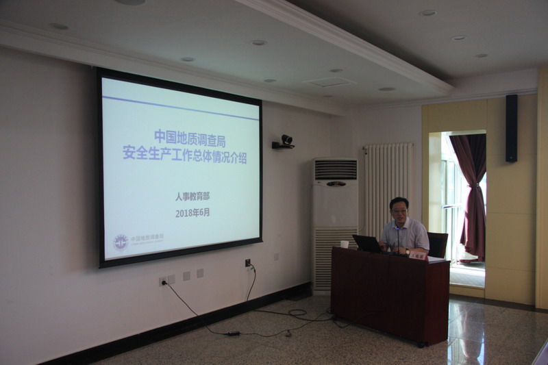 2018年6月27日,中国地质环境监测院举办安全生产培训班。此次活动是安全生产月中一项重要活动,邀请了中国地质调查局人事教育部主任助理王兆国、中国地质调查局水环中心大数据研究室副主任范振林作安全生产专题讲座。