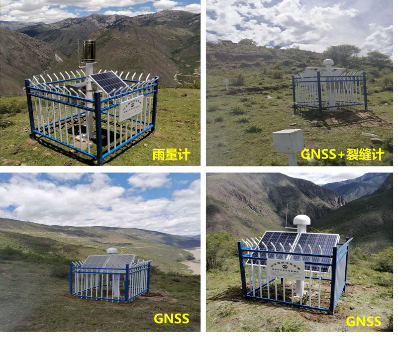 项目组结合地方自然资源部门地质灾害防治需求,聚焦金沙江上游具有堵江风险的高位滑坡,利用多源多期光学遥感数据、InSAR技术、无人机航测并结合地面调查,对金沙江上游84处地质灾害隐患点进行风险评估,最终圈定西藏自治区贡觉县麦巴村滑坡、色拉滑坡,江达县沃达滑坡3处变形较大、堵江风险较高的高位滑坡隐患点开展普适型监测设备试用示范工作。截止6月15日,项目组已完成18套监测预警普适型仪器设备的安装和调试工作,其中包含2套智能雨量计、12套地表位移GNSS监测站、4套智能地表裂缝计,所有监测设备均按照《地质灾害监测通讯技术要求》统一将监测数据上传至地质灾害监测预警物联网云平台。