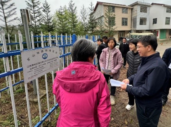调研组实地考察了我院与地方共建的赣州市信丰县安西镇烂泥坑稀土矿矿山地质环境监测示范区,与相关管理部门详细介绍了示范区监测工作开展情况和取得的最新成果,以及相关技术在未来实践中的应用前景。