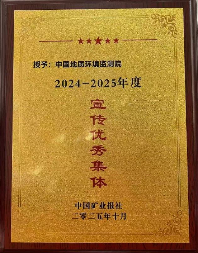 近日,中国地质环境监测院荣获中国矿业报颁发的2024-2025年度“宣传优秀集体”荣誉称号,以表彰其在地质环境监测新闻宣传工作中的突出贡献。
