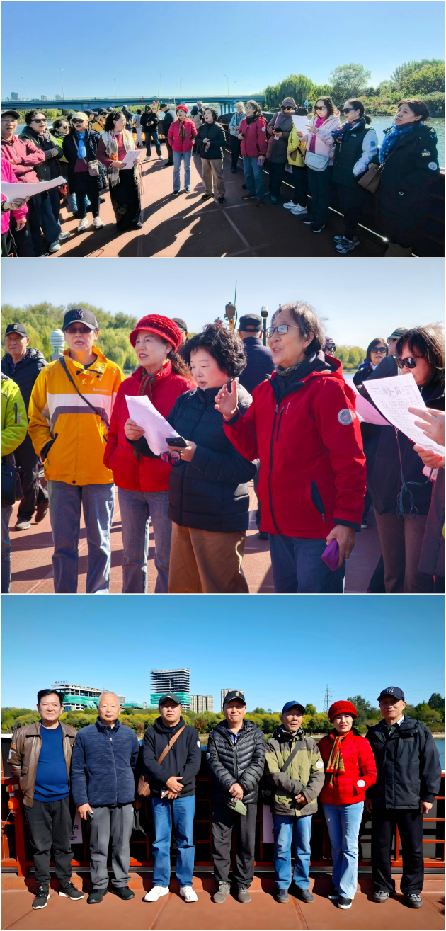 乘船游览环节,老同志们在波光粼粼的运河上齐声高唱《我和我的祖国》《没有共产党就没有新中国》等经典红色歌曲,尽情抒发着心中的感恩之情和自豪之情。金秋时节,运河两岸美不胜收,老同志们或凭栏远眺、或开怀畅谈,纷纷用手机记录下运河美景,气氛格外欢愉。“快二十年没来了,运河的变化真是翻天覆地!”退休的曾青石教授激动地指着远处的城市副中心建筑群说道。