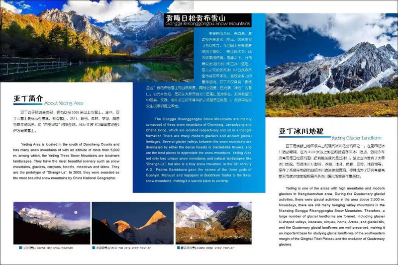 调查同时发现,稻城亚丁地质遗迹普遍缺乏科学解说,依托项目调查精心编制了科普手册、地质遗迹画册、导游图、少儿科普读本、宣传折页等系列科普材料,供游客阅览,提高了民众正确认识自然的意识。