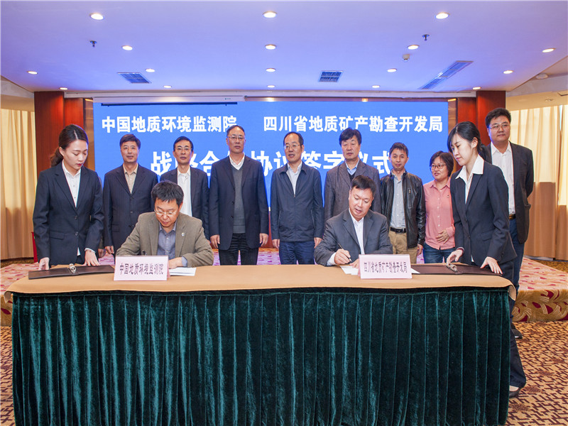 马军说,在党的十九大胜利召开之际,中国地质环境监测院与四川省地质矿产勘查开发局开展战略合作,是学习贯彻十九大精神和习近平总书记重要讲话的一项战略行动,是贯彻落实中国地质调查局党组关于加快实施创新驱动战略,推进地质调查战略性结构调整,加强与省级地勘单位合作交流的一项重要举措,也是中国地质环境监测院与四川省地质矿产勘查开发局多年合作的延续和深化,对充分发挥双方优势,提升双方科技创新能力,促进地质环境领域的产学研结合具有重要的示范意义。