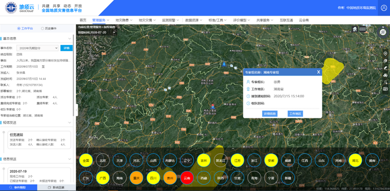 为进一步支撑自然资源部和中国地质调查局专家组汛期派出专家工作的科学决策和精细管理,在部地勘司和局水环部统一部署下,中国地质调查局环境监测院基于全国地质灾害信息平台研发了“地质灾害防御在线指挥调度系统”。
