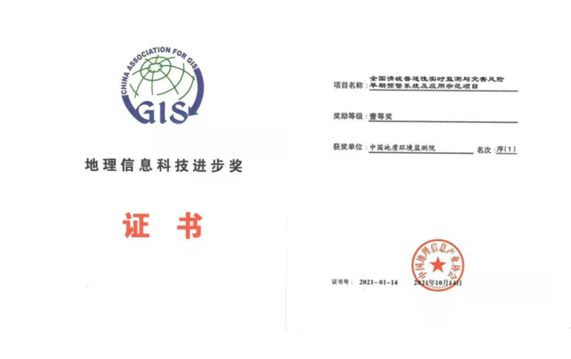 近日,由中国地理信息产业协会主办的2021年中国地理信息产业大会在湖北武汉举行。会上表彰了2021年度地理信息科技进步奖,由中国地质调查局地质环境监测院(下文简称“环境监测院”)联合四川大学、武汉地大信息工程股份有限公司等单位完成的“全国滑坡普适性实时监测与灾害风险早期预警系统及应用示范项目”荣获2021年地理信息科技进步一等奖。