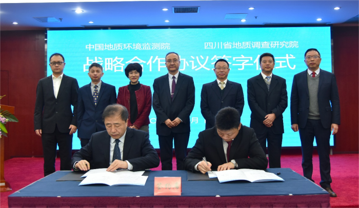 2023年1月9日,中国地质环境监测院(以下简称“环境监测院”)与四川省地质调查研究院(以下简称“四川地调院”)在四川成都签订战略合作协议。环境监测院党委书记、副院长刘同良,四川地调院党委书记、院长蒋俊代表双方签署战略合作协议并致辞。